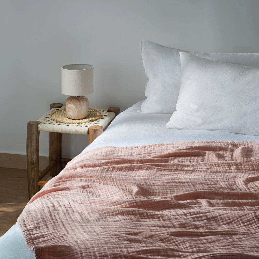 Transformeer je ruimte in een rustgevende cocon met onze luchtige plaid van biologisch katoenen mousseline. Deze plaid is gemaakt van GOTS-gecertificeerde 100% biologische katoenen mousseline en biedt ongeëvenaarde zachtheid en ademend vermogen. Perfect om een ​​vleugje sereniteit aan je huis toe te voegen.